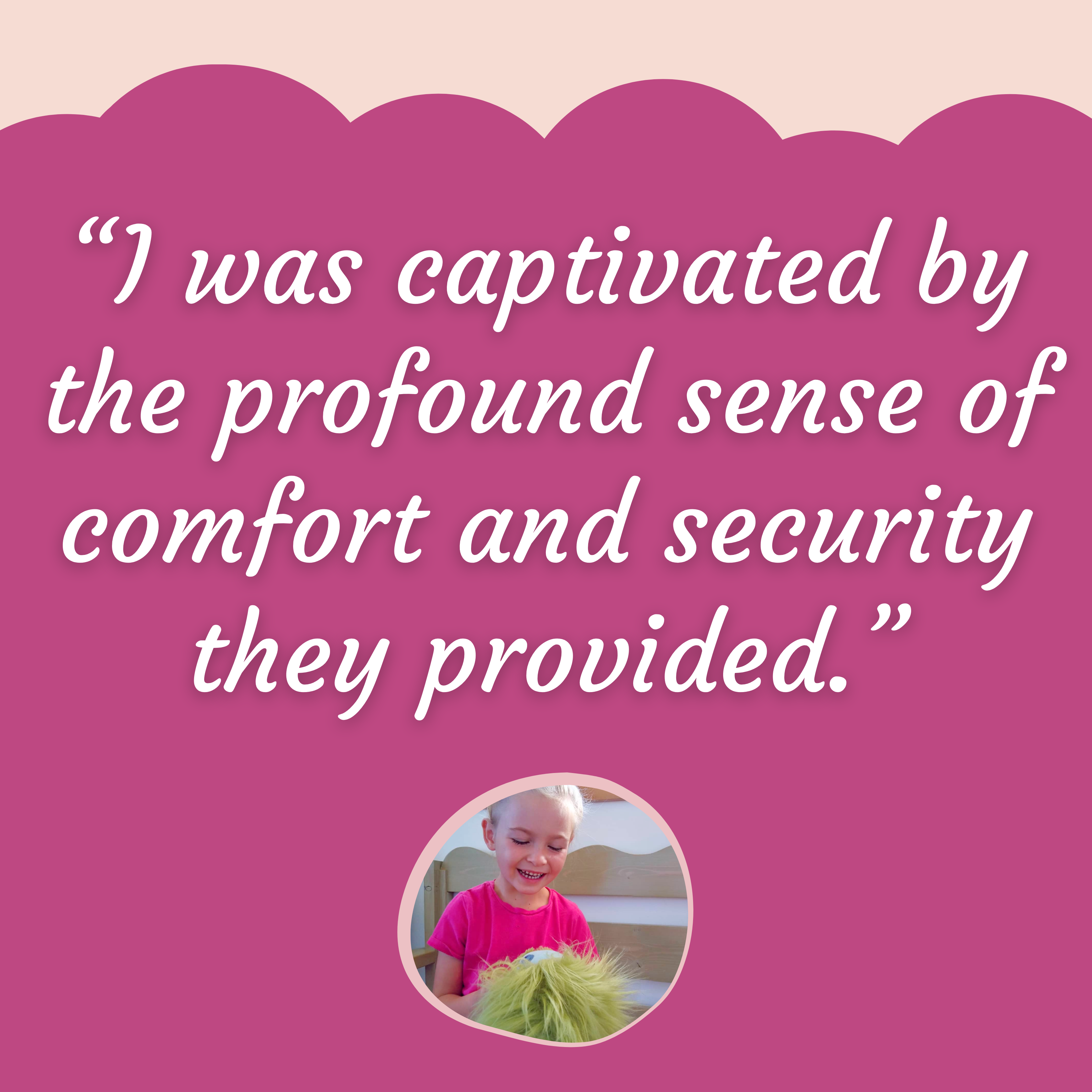 A Mimbleball is a round plush therapy toy and gift with super soft, zany hair that spontaneously generates joy, laughter, connection, and comfort. Its wide-set eyes hold a steady, gentle gaze, making it the perfect listening companion and creating an instant bond while its incredible softness soothes and comforts.
